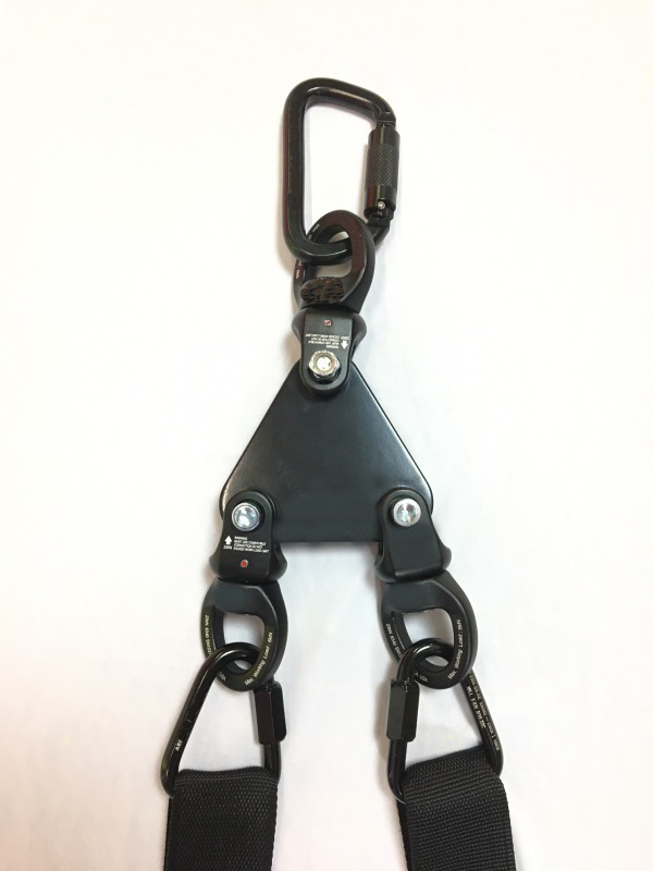 Setting up straps has never been easier. This setup gives you everything you need for dual line rotation within your performance which is necessary for straps (or Trapeze, Net, Chains, Hammock or any two point apparatus hanging from a single rig point)